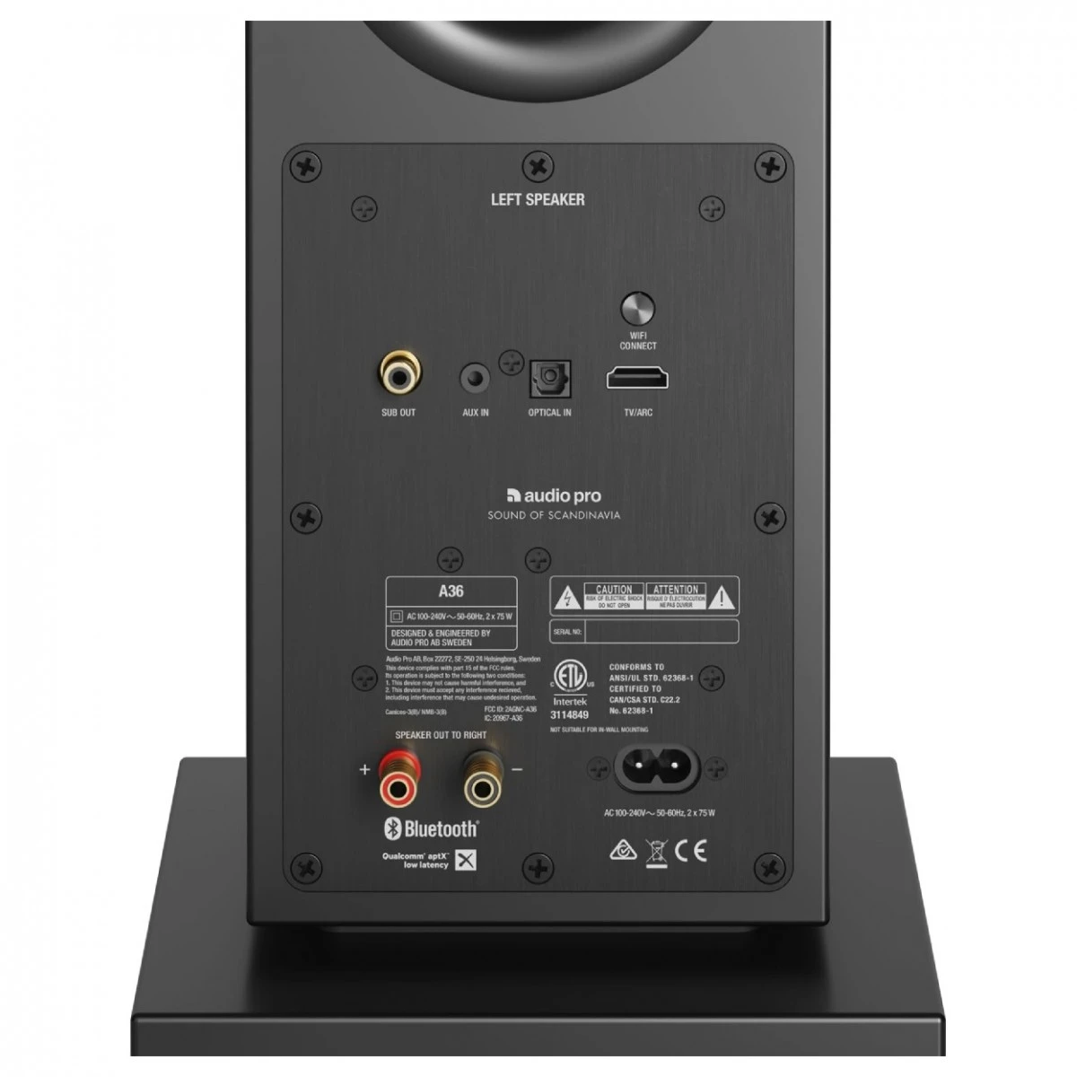 Featuring an HDMI ARC port, the A36’s make your listening experience easy. This port allows your TV remote to control them, so you’re not having to mess around with finding those elusive remotes. One remote will do it all.