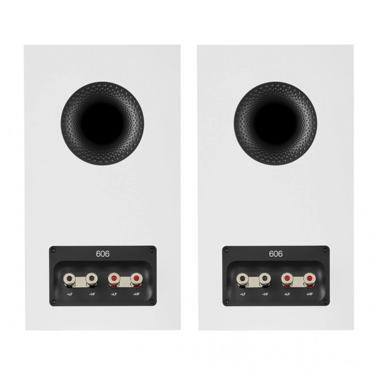 The Bowers & Wilkins 606 S3 Bookshelf Speakers feature new titanium tweeters and six-and-a-half-inch Continuum cone bass/midrange drivers. This bass/midrange driver has been positioned closer to the tweeter than in previous generations, presenting more cohesion between low and high frequencies and leading to superior sound imaging. This is supported by the rear Flowport, which uses a dimpled pattern to prevent air turbulence from affecting output. The outcome is a fully absorbing listening experience with minimal distortion, wrapped up in the iconic B&W style.