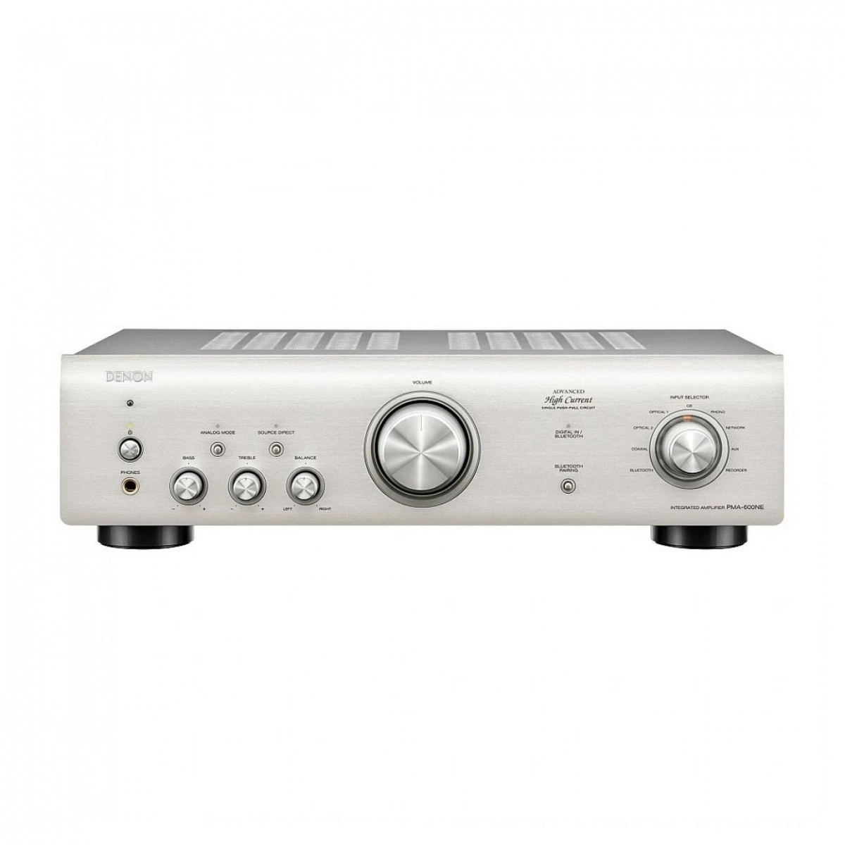 The Denon PMA-600NE integrated stereo amplifier gifts you 70 Watts of power from two channels each, which offer distortion-free audio and 4ohms impedance. The built-in DAC produces hi-res sound quality that is sure to get the most out of your music, with the Advanced High Current (AHC) Single-Push-Pull Circuit providing a stunning electrical current supply.
