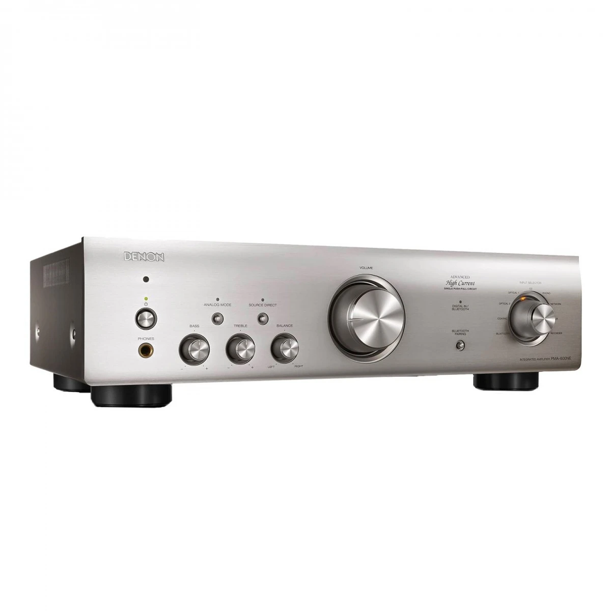 The Denon PMA-600NE Integrated Stereo Amplifier is designed to excellence and is an ideal choice for those who want to build their first 2-channel HiFi system. Powered by the Denon Advanced High Current (AHC) single-push-pull circuit power amplifier, the PMA-600NE integrated amplifier delivers 45 Watts (8ohm, 20Hz-20kHz, THD 0.07) of power per channel. Easily connect analogue and digital sources including your turntable to the built-in phono pre-amp. Listen to your favourite high-resolution audio content with the 192kHz/24bit D/A converter or connect via Bluetooth to stream nearly unlimited songs. The PMA-600NE provides exceptional sound quality that balances high power with delicate, musical details.