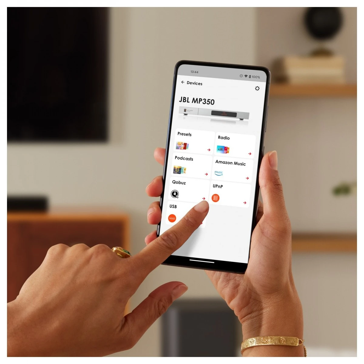 The JBL Classic MP350 is a fusion of retro-flair and modern functionality. In order to maintain the sleek distinction of the aluminium front plate, JBL have designated all operations to your smart device. The JBL Premium Audio App (available through the Google Play or Apple App Store) serves as your portal to a wide range of network streaming services, internet radio stations and podcasts, and USB and UPnP playback. Moreover, with support for Qobuz, Amazon Music, and Spotify and Tidal Connect, you can access your pick of playlists all in one place. It’s also Roon Ready, offering complete network compatibility.