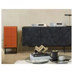 - Slim design and walnut veneer side panels ensure positional flexibility and great visual appeal