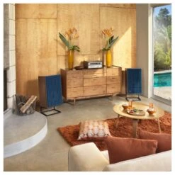 | Finish | Natural Walnut veneer with Black, Orange, or Blue Quadrex Foam Grille |