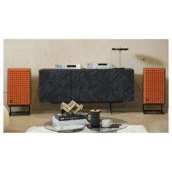 | Finish | Natural Walnut veneer with Black, Orange, or Blue Quadrex Foam Grille |