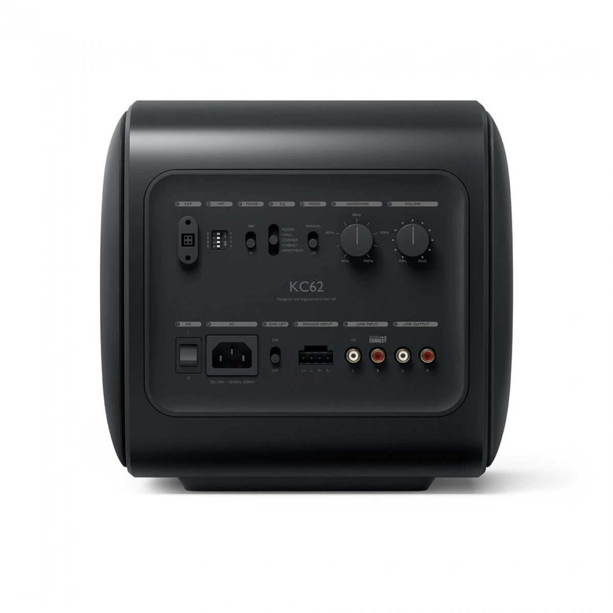 Integrate the KC62 into almost any audio system. Either through SmartConnect or speaker-level inputs (with options for Line output and a High Pass Filter), create the ultimate listening experience. Alon with crossover and volume control on the rear panel, the switchable Room Placement Equalisation lets you quickly adjust this subwoofer for common environments and placement positions. The minimalist design is visually appealing, whilst maximising audio performance in your speaker system.