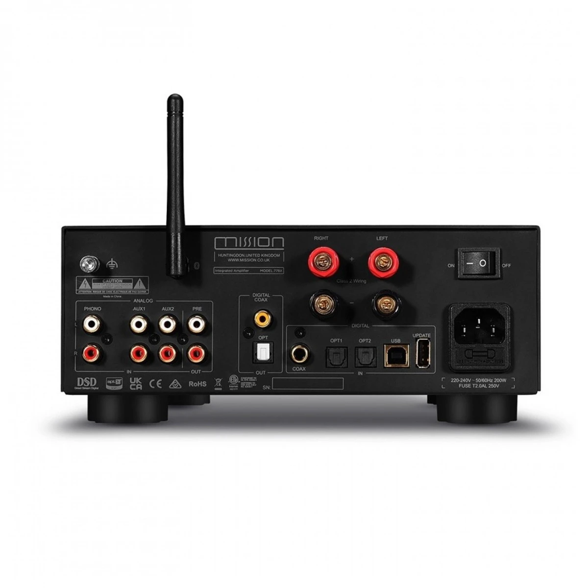 The Mission 778x Integrated Amplifier supplies a wide range of connectivity options that deliver refined, precise audio quality. Offering both coaxial and optical inputs, the 778x enables direct connectivity to digital devices, as well as three studio-grade RCA inputs, including a moving magnet (MM) phono input for turntables, enabling exceptional analogue connectivity. Bluetooth also lets you stream your favourite music wirelessly from your smart devices in aptX and AAC codecs.
