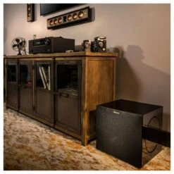 A built-in RJ-45 connector allows for full integration into Control4, Crestron, Savant, and RTI control systems – meaning the subwoofer can automatically change input, EQ, gain, and phase settings when you simply select a new source or activity in your control system.