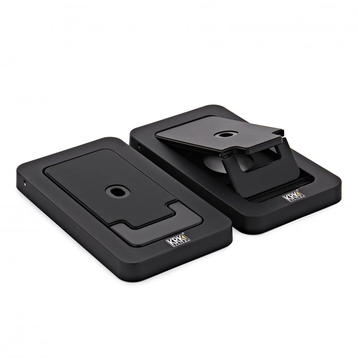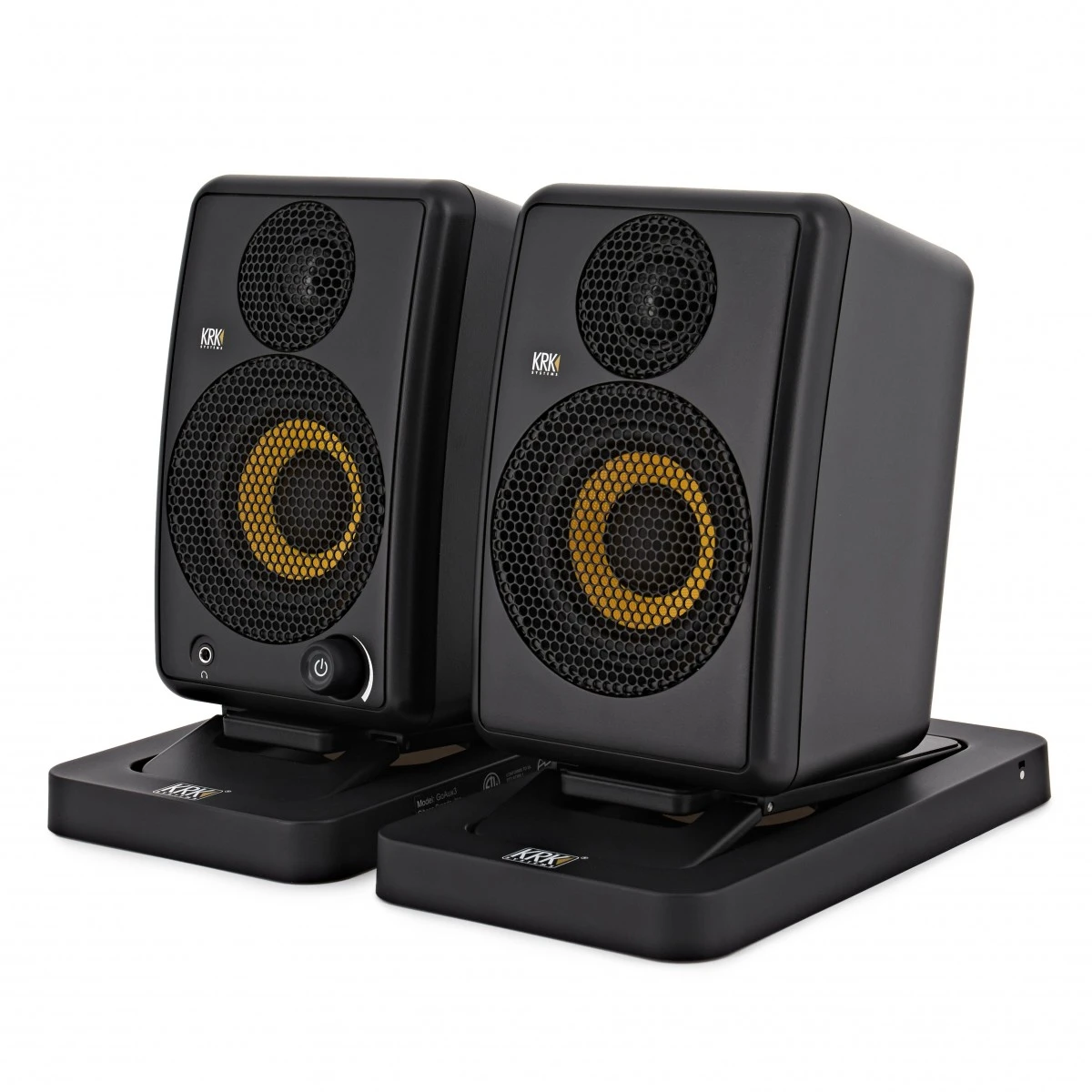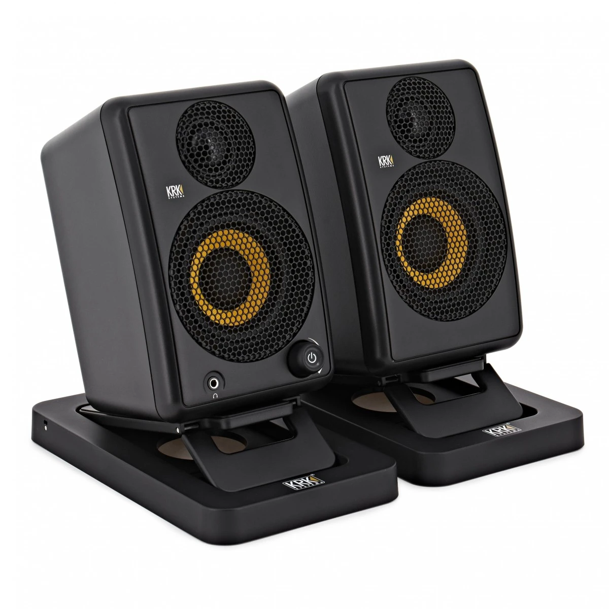 - Compact and portable studio grade KRK monitoring speaker system, with speaker stands and carry case.
