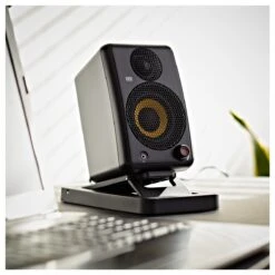 - sturdy speaker stands provide adjustable positioning and monitoring angle