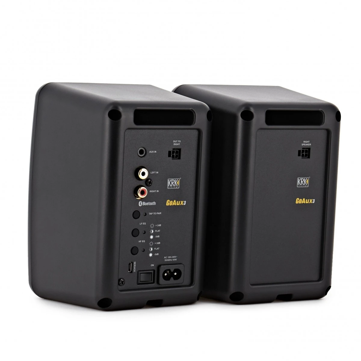 - Three-inch woven glass aramid woofers and ABS cabinets give the Go Aux 3 a rich and punchy bass response