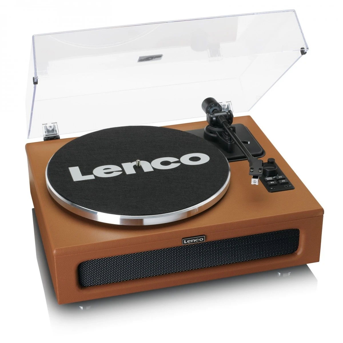 The Lenco LS-430 is an all-in-one music system featuring powerful built-in speakers that deliver rich sound quality. The speaker design is comprised of a four-speaker configuration (two 15-watt speakers and two 10-watt speakers) providing balanced, pristine sound quality. It also features onboard pitch control as well as a built-in preamplifier which can be switched on/off. With a sleek, stylish design inspired by vintage turntables; the LS430 is perfect for vinyl enthusiasts and music lovers alike.