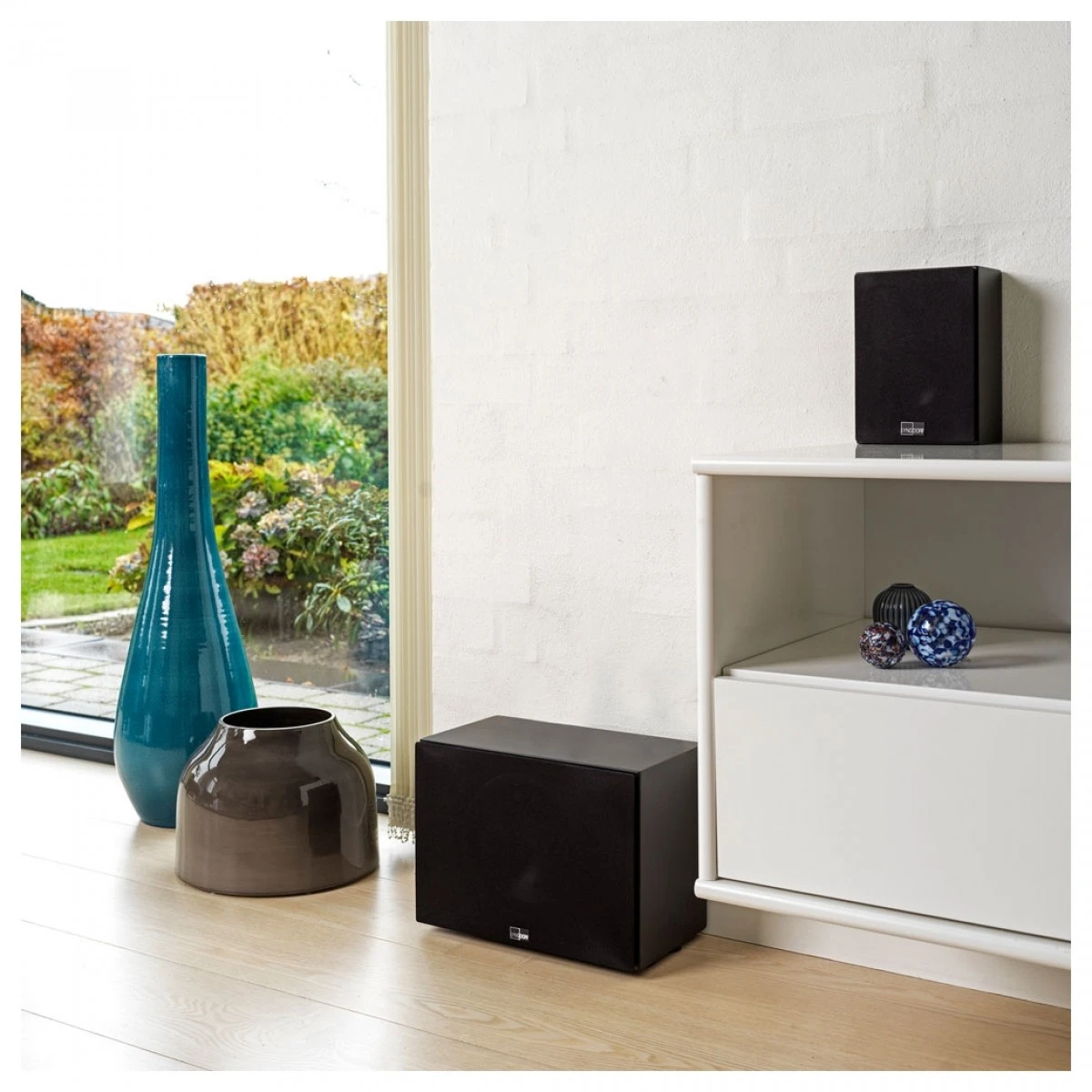 The BW-3 is delivered without feet mounted, as the compact cabinet design allows for several ways to integrate the speaker with home decor. With cabinet dimensions reduced to a minimum, the BW-3 can be positioned standing upright or on its side in order to fit into the available space. This construction makes it the perfect match for any setup, as a subwoofer for other speakers in a stereo or home cinema system.