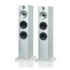 - Available in three stylish finishes: Black, Oak, and White, each with a grille embossed with the Bowers & Wilkins name.