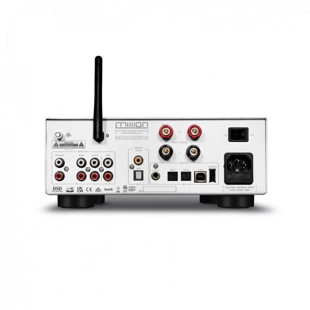 The Mission 778x Integrated Amplifier offers diverse connectivity options, including digital coaxial and optical inputs, three RCA inputs, and a moving magnet phono input for turntables. As well as physical connections, it supports Bluetooth streaming in aptX and AAC codecs. The 778x features a Class-AB power amplifier design with a 200VA toroidal transformer for strong sound output. It also includes a preamp section and a hi-res onboard DAC with an ES9018K2M chipset, offering a sampling rate of up to 384kHz (PCM) and DSD256.
