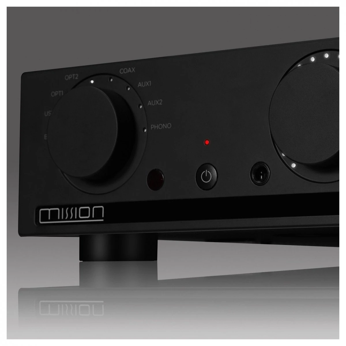 The Mission 778x Integrated Amplifier offers diverse connectivity options, including digital coaxial and optical inputs, three RCA inputs, and a moving magnet phono input for turntables. As well as physical connections, it supports Bluetooth streaming in aptX and AAC codecs. The 778x features a Class-AB power amplifier design with a 200VA toroidal transformer for strong sound output. It also includes a preamp section and a hi-res onboard DAC with an ES9018K2M chipset, offering a sampling rate of up to 384kHz (PCM) and DSD256.