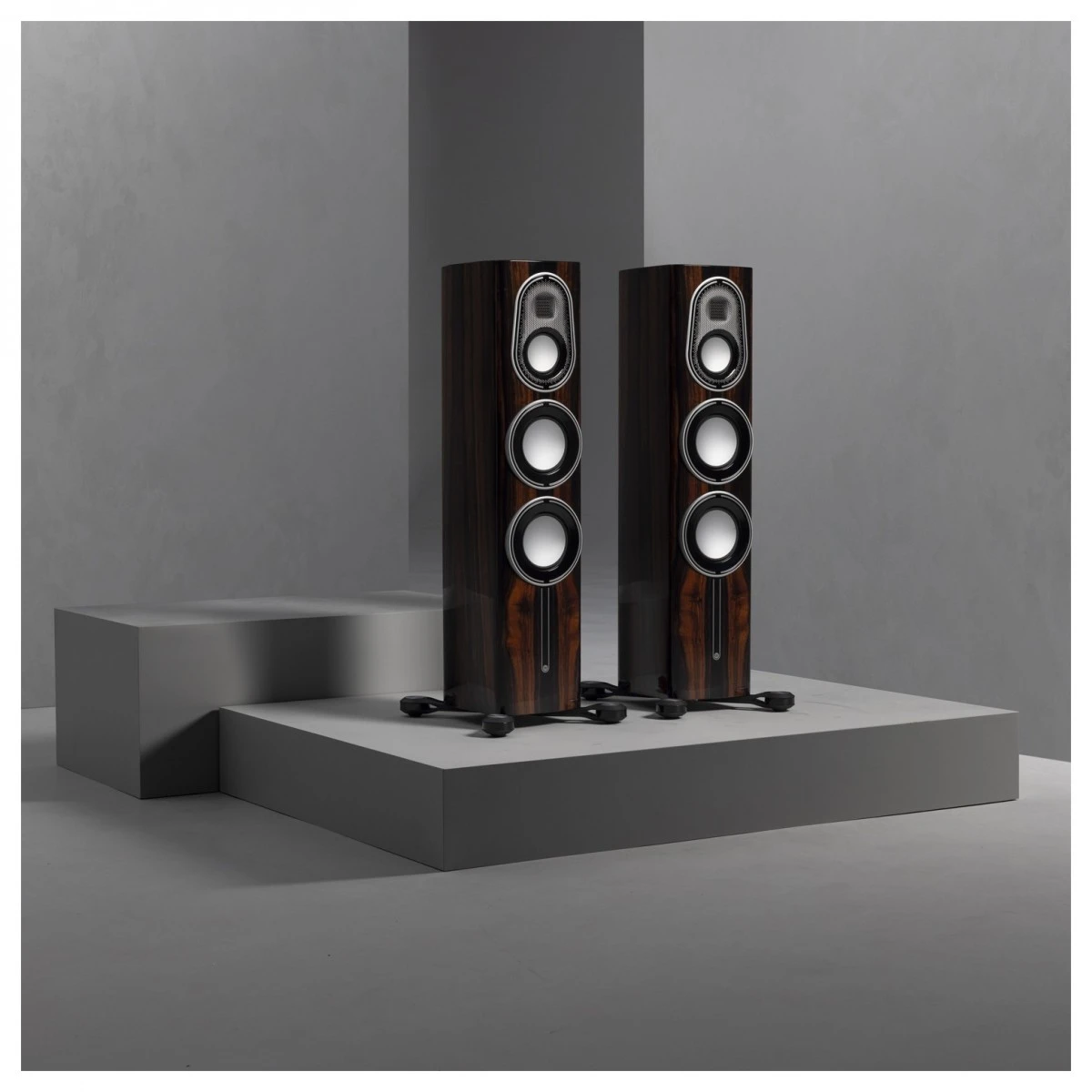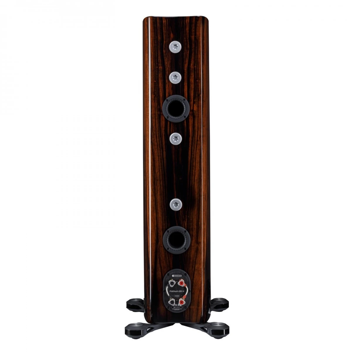 Countermeasures against distortion have been implemented through the design of the cabinet. From the tuned rear ports to the dual layer aluminium driver frames, the Platinum 200 3G is well isolated against rattle and turbulence during intense playback. New outrigger legs keep the loudspeaker stable, with the strength required for easier walk-in positioning and ergonomic, top-down feet levelling instead of tipping the speaker to adjust the height.