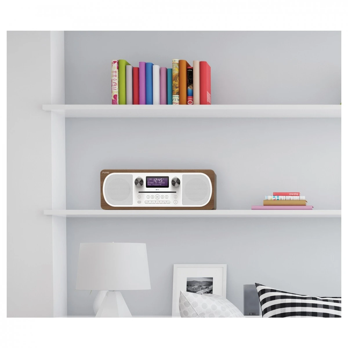 Pure’s all-in-one music systems combine digital radio, CD player and easy wireless connection to portable devices giving you a huge choice of listening. The space-saving designs with integrated speakers deliver ultra-clear class-leading audio and look beautiful with their simple controls and wood style finish. Evoke C-D6 offers room-filling stereo sound and packs in DAB digital and FM radio, a slot-loading CD player and includes Bluetooth for wireless playback of all your mobile music.