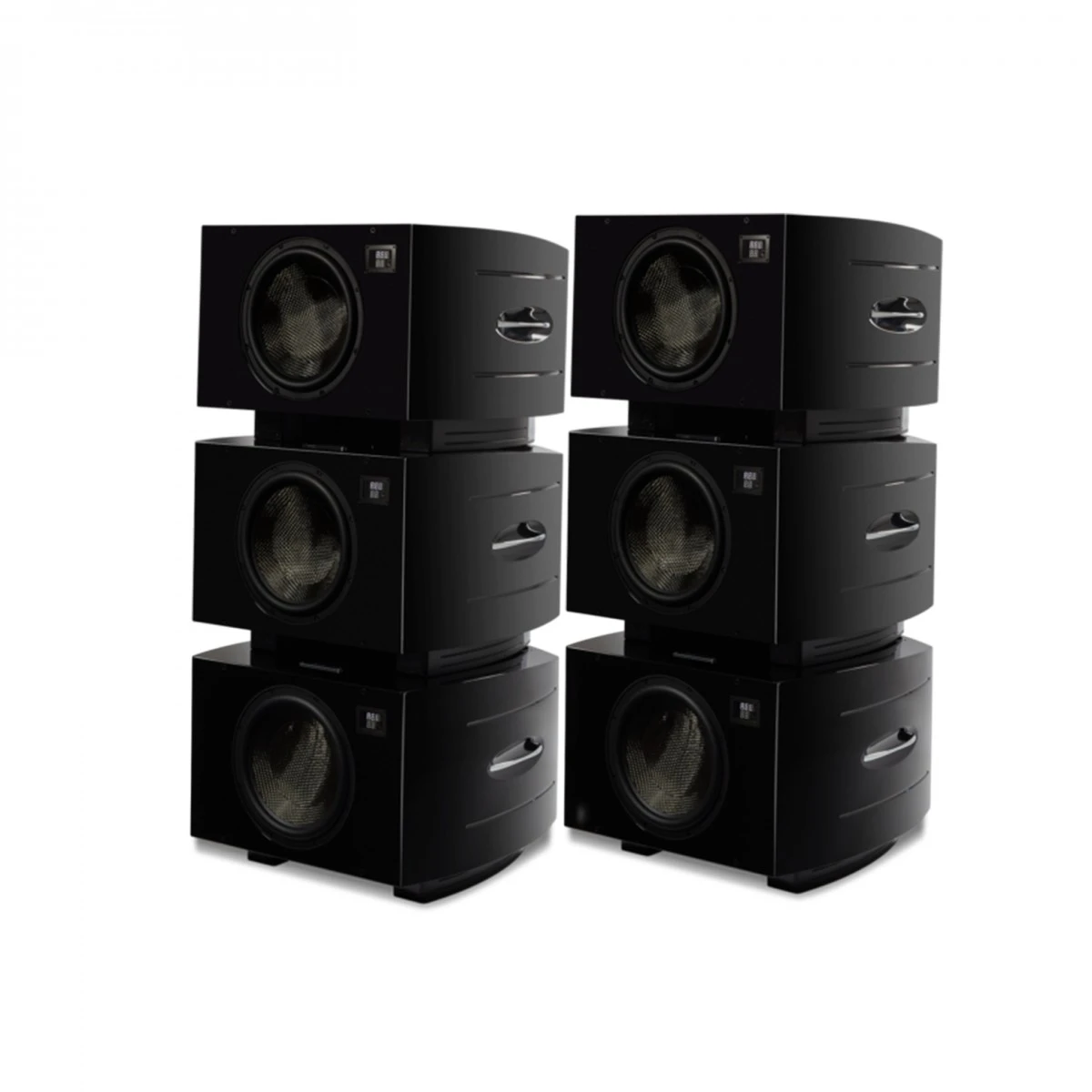 Harnessed with triple-plated steel handles, the No. 32 has a firm grip which is easily transportable. The stacked line array design allows multiple subwoofers to be stacked on top of each other, which generates a three-dimensional sound. The REL Reference Remote Control offers effective sound control so you can create a sound that suits you.