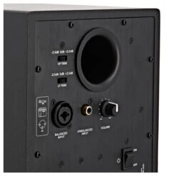 For global manipulation over the amplitude of your studio monitor, you can adjust the output volume at the rear of your speaker. The active studio monitor features A/V shielding. This always keeps your speaker sounding great by providing protection against electrical interference from laptops and monitor screens within close proximity.