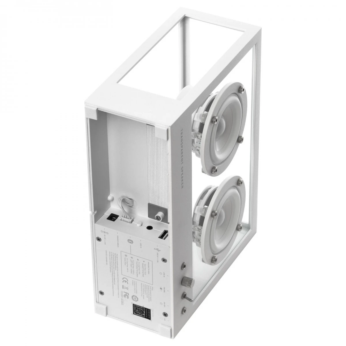 The Small Transparent Speaker has a fine tuned DSP chip to create studio level quality. The DSP chip is perfectly matched to the custom 3-inch drivers and tempered glass enclosure to create a crystal clear top end and a rich and vibrant depth that cuts through and brings the listener closer to the music.