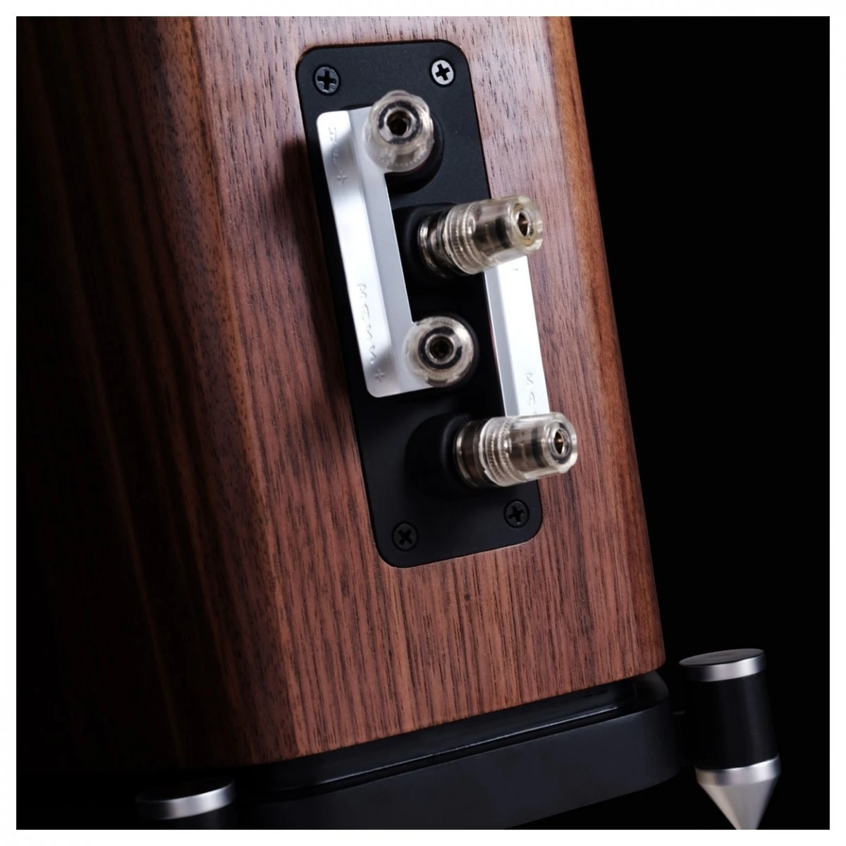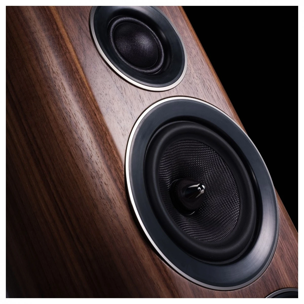 Wharfedale’s choice of Kevlar cones for the bass drivers ensures that the bass is naturally self-dampened and dispersed, restricting excess vibrations which would inhibit sound purity. The EVO 4.3 floorstanding speakers are available in a choice of finishes including this, walnut, as well as white oak and black wood. Across all finishes, black grilles are optional to cover your drivers. The smoothly curved sides of the EVO 4.3 speakers make them comfortable to handle and position within the home. Spiked feet are supplied for secure placement on carpets.