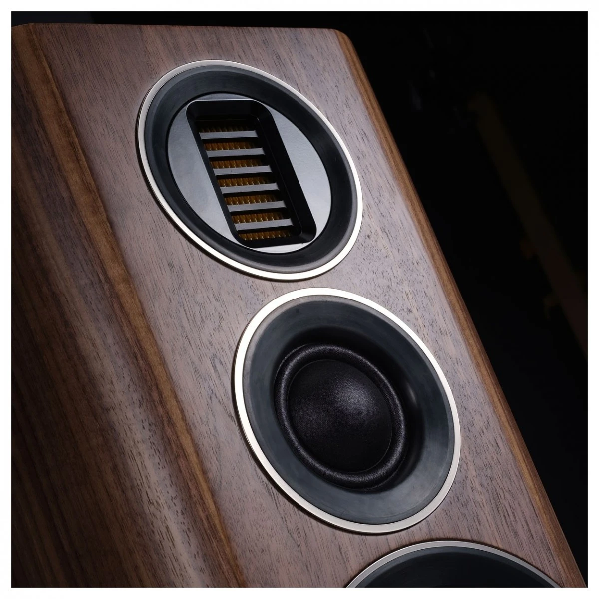The Wharfedale EVO 4.3 features an AMT (Air Motion Transformer) high-frequency transducer which helps it outperform other compact floorstanders in this price range. The purpose of an air motion transformer is to transform electrical energy into high-frequency sound waves. They differ from other types of tweeters by dispersing air through a pleated diaphragm in an accordion-like motion. The benefits of AMT tweeters include achieving lower frequencies than most others, more efficient air dispersion, and naturally low distortion.